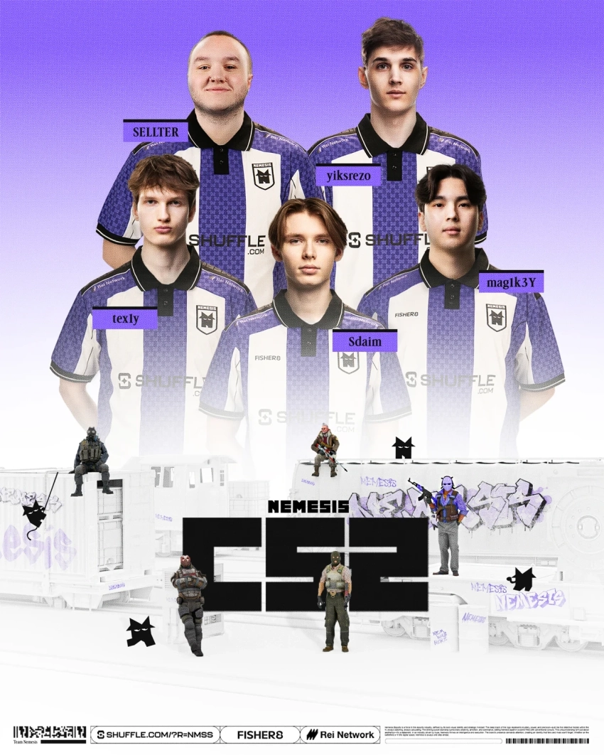 Источник: NemesisАзиатская киберспортивная организация Nemesis объявила о выходе на сцену Counter-Strike 2. Клуб подписал готовый русскоязычный ростер, который ранее выступал под тегом GUN5.