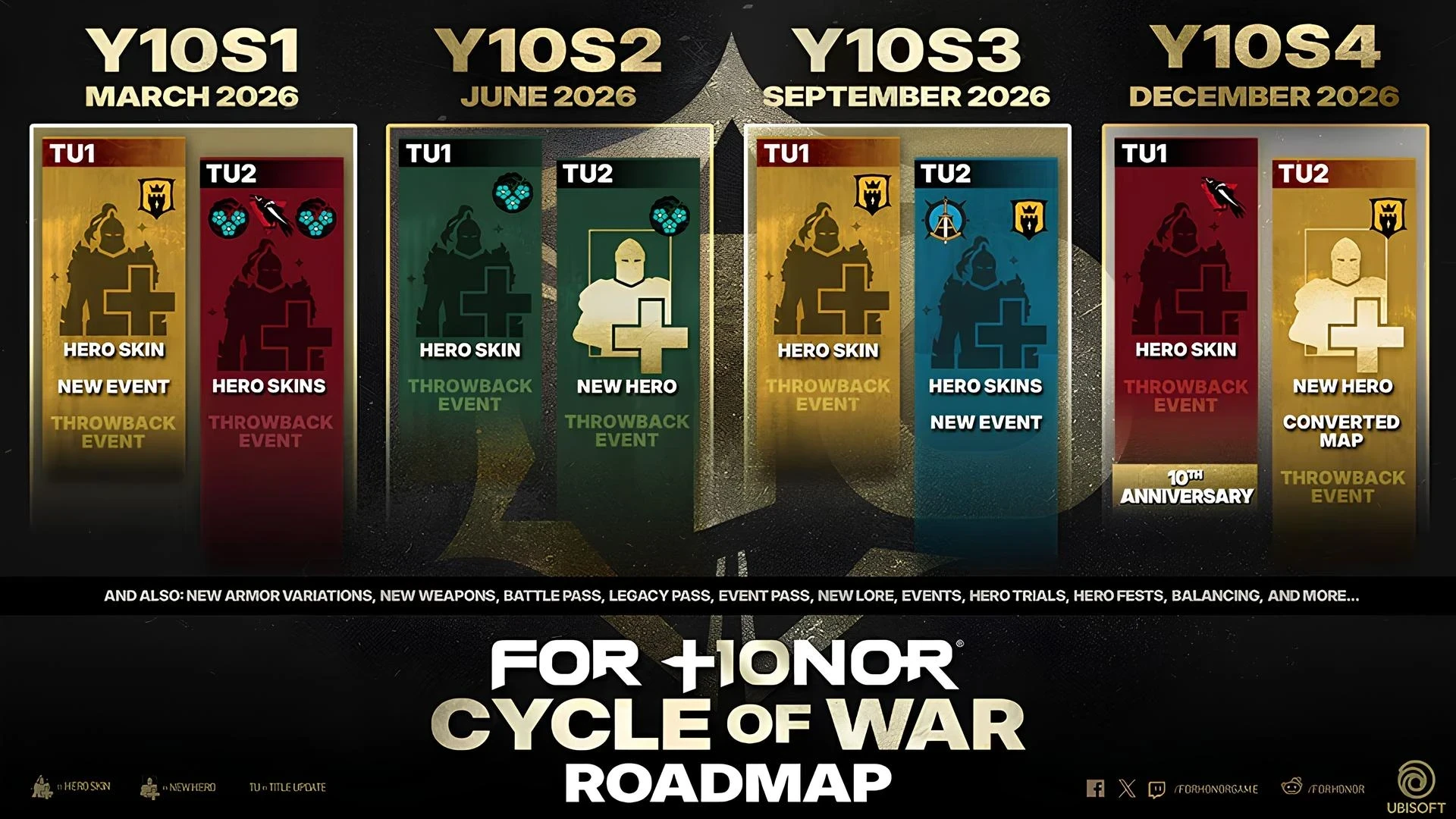 Обложка: скриншот For HonorUbisoft посвятила свежий трейлер For Honor под названием «Цикл войны» ретроспективе игры. В этом году старовал десятый год поддержки и создатели показали дорожную карту следующих обновлений.