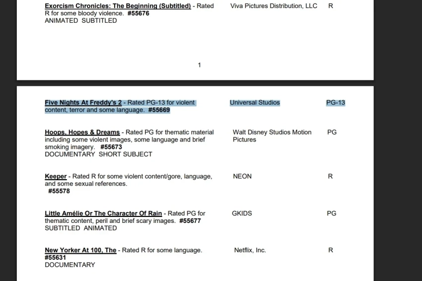 Американская киноассоциация MPAA выдала сиквелу финансово успешной экранизации Five Nights at Freddy’s рейтинг PG-13. Это значит, что фильм не рекомендуют к просмотру детям до 13 лет. Из-за наличия в нём «жестокого контента, ужаса и брани».